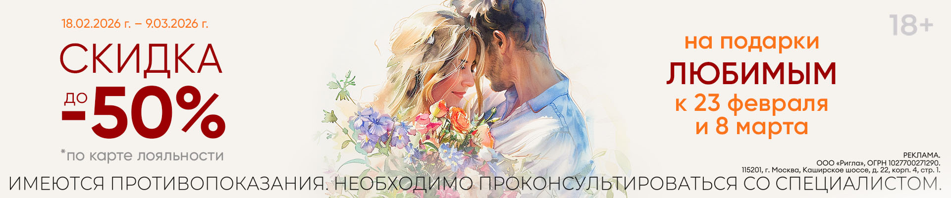 Организатор акции – ООО «Ригла», ИНН 7724211288. Организатор вправе вносить изменения в условия и ассортимент акции, опубликовав изменения на сайте или отменить акцию. Организатор акции не гарантирует постоянное наличие полного акционного ассортимента в аптеках в течение всего периода проведения акции.